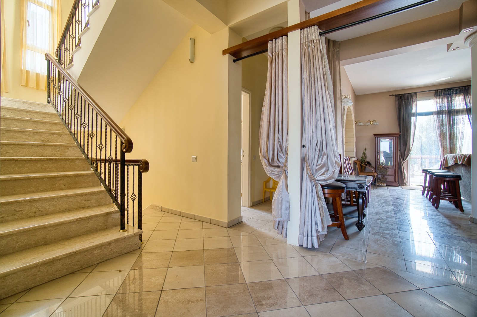 Расположенная в холмах Талы, Пафос, эта очаровательная резиденция предлагает идиллический образ жизни с множеством привлекательных особенностей. Возвышенное расположение открывает панорамные виды на Средиземное море и живописные окрестности, создавая спокойную и умиротворённую атмосферу для жителей. Несмотря на свою уединённость, Тала остаётся удобно близкой к необходимым удобствам: на площади Талы есть магазины, супермаркеты и рестораны. Любители природы оценят множество возможностей для активного отдыха, включая пешие прогулки, велоспорт и исследование близлежащих троп. Близость Талы к оживлённому городу Пафос обеспечивает лёгкий доступ к разнообразным удобствам и достопримечательностям. Эта великолепная вилла расположена на тихой улице с великолепными видами на Талу и сверкающее море вдали. Просторная гостиная оборудована уютным камином, идеально подходящим для прохладных зимних вечеров, а открытая столовая и кухня плавно переходят на большой балкон. Этот обширный балкон окружает виллу, предоставляя отличное пространство для ужинов на свежем воздухе и демонстрируя восхитительные виды на частный бассейн.