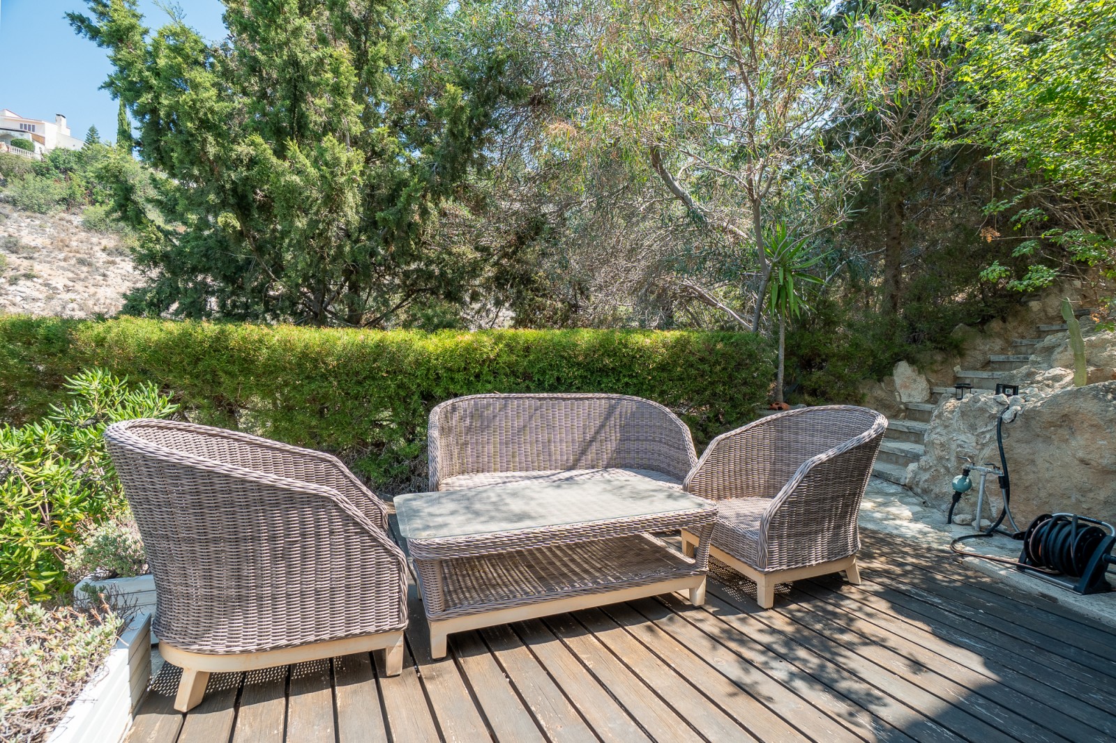 Вилла находится всего в нескольких минутах ходьбы от престижного загородного клуба Камарес, где есть теннисные корты, бассейн и отличный ресторан. Любители истории и культуры смогут посетить монастырь Святого Неофита XII века, расположенный неподалеку.