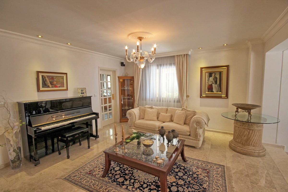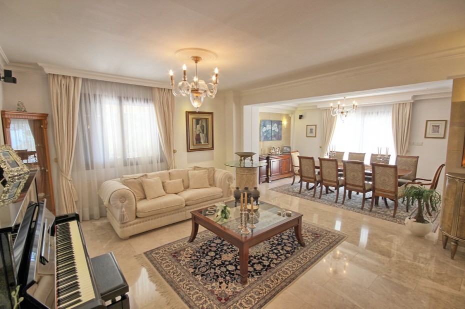 Войдя через главный вход вас встретит большой и со вкусом обставленный потрясающей мебелью хол, состоящий из 2 гостиных и большой обеденной зоны на 10 персон с удобными креслами. Доступ к большой отдельной, прекрасно оборудованной, всем необходимым кухне, ведет прямо из столовой, что облегчает обслуживание гостей во время трапезы.