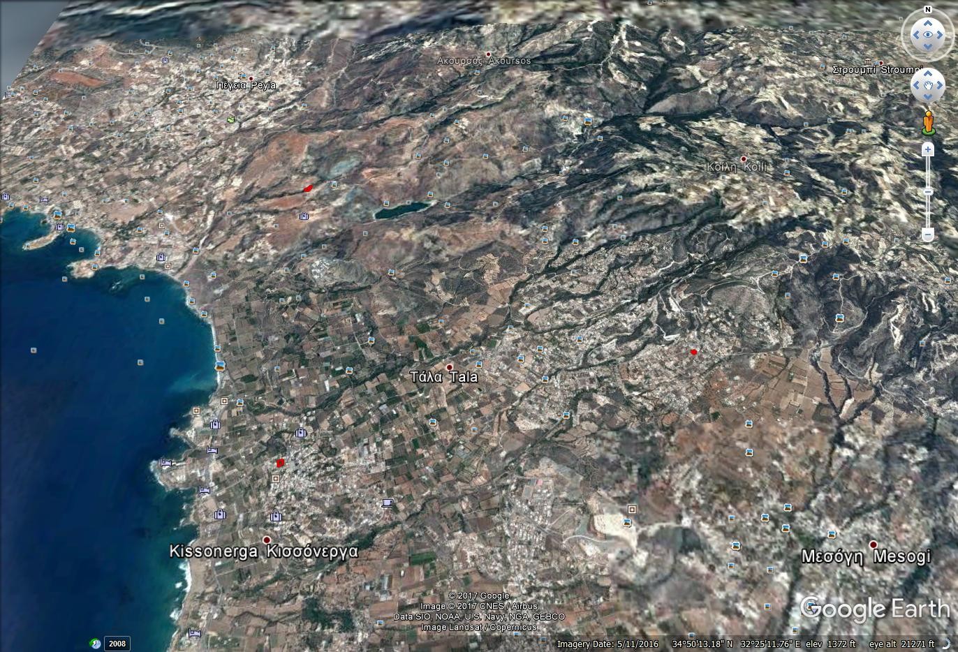 Tala is a large suburban village 6 km north of Paphos, Cyprus. Many non-Cypriots have moved here permanently or have a summer home in Tala. Agios Neophytos Monastery is 1 km north. The Agios Neophytos Monastery was founded by Neophytos. After being jailed for pursuing an ascetic life, he fled into the hills of Cyprus and found a small natural cave in 1159. He slowly excavated the opening further to encompass his hermitage cell, a small chapel, and his eventual tomb. Neophytos was staunchly against materialism and being bothered, which kept the population of monks much smaller than at other monasteries of the time.