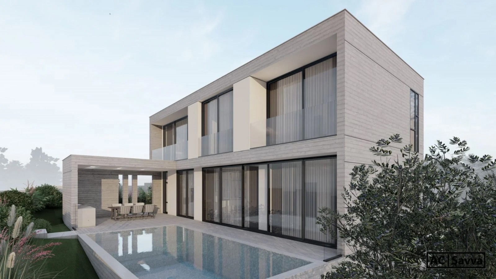 Вилла, спроектированная с учетом комфорта и уединения, отличается просторными жилыми помещениями и плавным переходом из внутренних помещений на улицу. На первом этаже расположена прекрасно спланированная гостиная и столовая зона открытой планировки, дополненные гостевым туалетом и отдельной кладовой. На этом же уровне удобно расположена просторная спальня с собственной ванной комнатой, идеально подходящая для гостей или проживания на одном уровне. Большие проемы ведут прямо к открытой зоне отдыха, барбекю и бассейну — идеально подходящим для развлечений или отдыха в спокойной обстановке. Просторный гараж обеспечивает безопасную парковку для двух автомобилей. Отдых на свежем воздухе выходит на новый уровень благодаря стильной зоне отдыха и барбекю, а также частному бассейну, создавая идиллическую обстановку как для отдыха, так и для дружеских встреч.