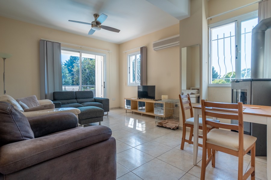 Discover this delightful ground-floor apartment in the heart of Universal, Kato Paphos, offering the perfect mix of comfort, style, and convenience. The property features a bright and airy open-plan living and dining area, flowing through large sliding doors to a generous covered veranda where you can relax and enjoy tranquil views of the communal gardens and swimming pool. Two well-proportioned bedrooms provide restful retreats, complemented by a modern, shared bathroom and built-in wardrobes for practical storage. The kitchen is both sleek and functional, designed to make everyday living easy and enjoyable. Outside, residents benefit from a beautifully maintained communal pool and uncovered parking. Ideally located within walking distance to the beach, seafront promenade, shops, and restaurants, this apartment is an ideal choice for a holiday home, permanent residence, or a smart investment. Title deeds are available for a smooth and secure purchase.
