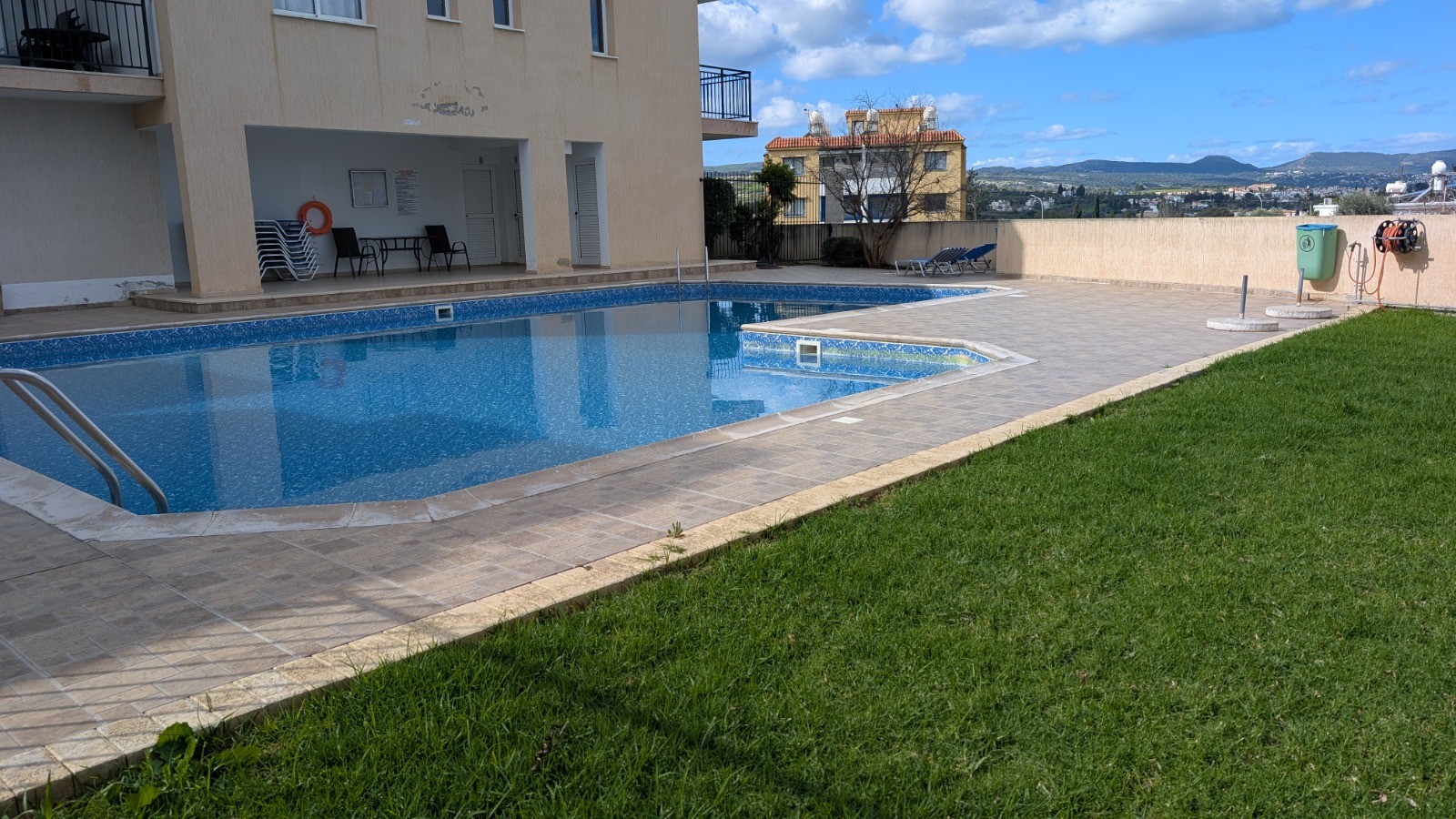 Выйдите на улицу и насладитесь прямым доступом к ухоженному общему бассейну — идеальному месту для освежения в теплые кипрские дни или просто для отдыха в тихой обстановке.