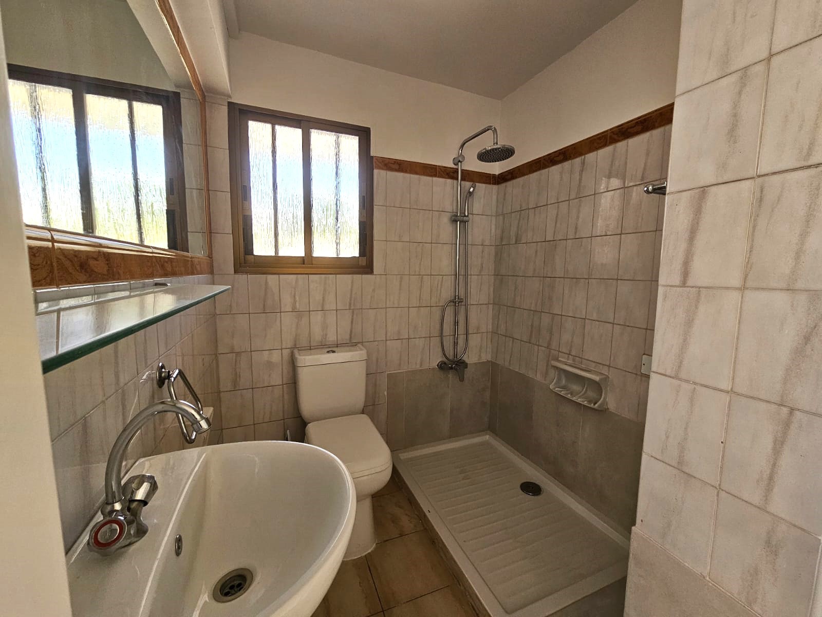 Первый этаж занимает площадь 180 м², включая крытую веранду площадью 19 м². Включает пять спален, две ванные комнаты, отдельную кухню, столовую и гостиную с очаровательным камином из дерева, а также два открытых парковочных места.