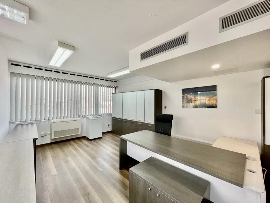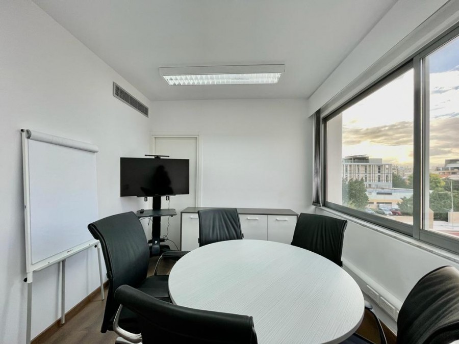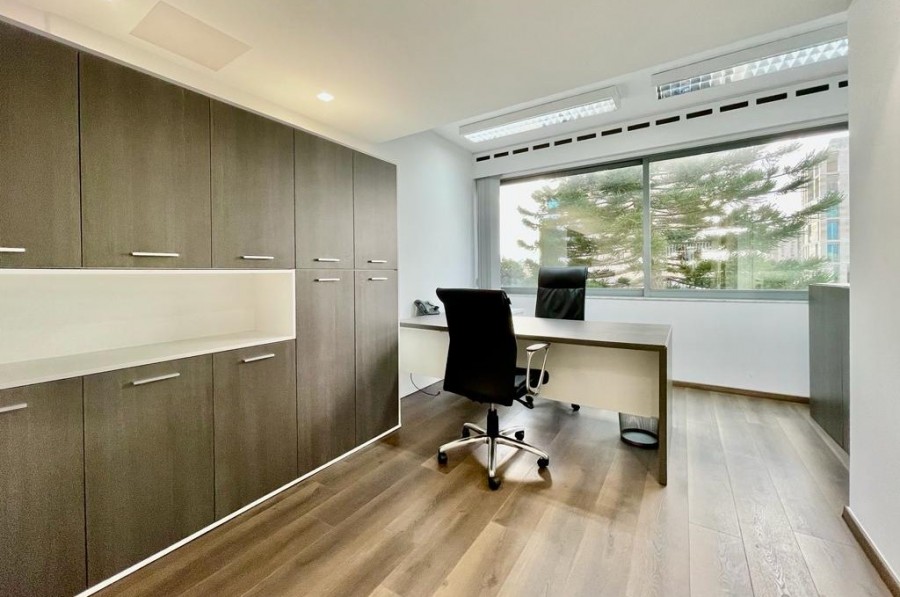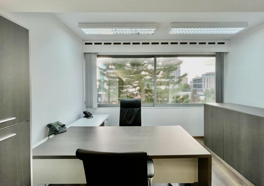 Основные характеристики объекта: расположен на 3-м этаже бизнес-центра, очень близко к проспекту Макариу и в окружении кафе и ресторанов. Недавно отремонтирован и полностью меблирован, оснащён сигнализацией и новой системой VRV кондиционирования и отопления. Включает открытое пространство, конференц-зал, офис и небольшую серверную с собственным кондиционером. Внутренняя площадь составляет около 100 кв.м., а также есть ванная комната, общая кухонная зона и зона ресепшн. В распоряжении арендатора два частных парковочных места.