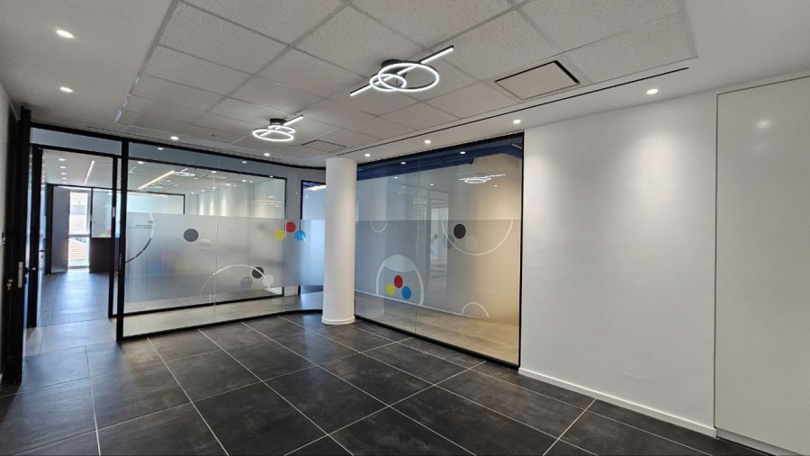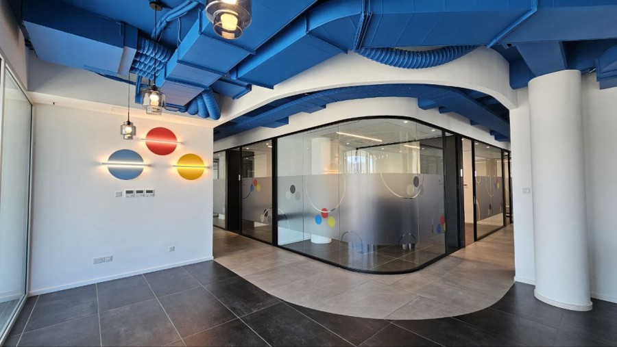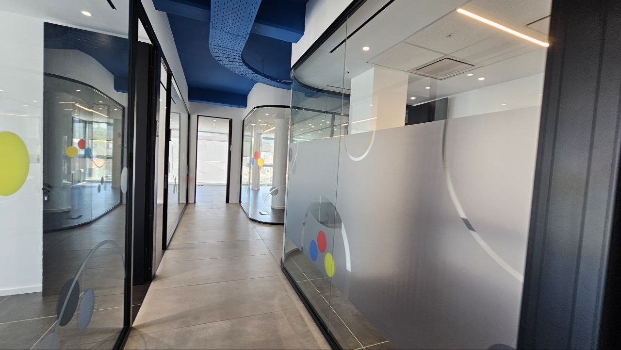 Помещение включает в себя стильную зону ресепшен, отдельную переговорную комнату для презентаций и встреч с клиентами, а также кухню для персонала. Для обеспечения комфортной работы круглый год установлены кондиционеры.