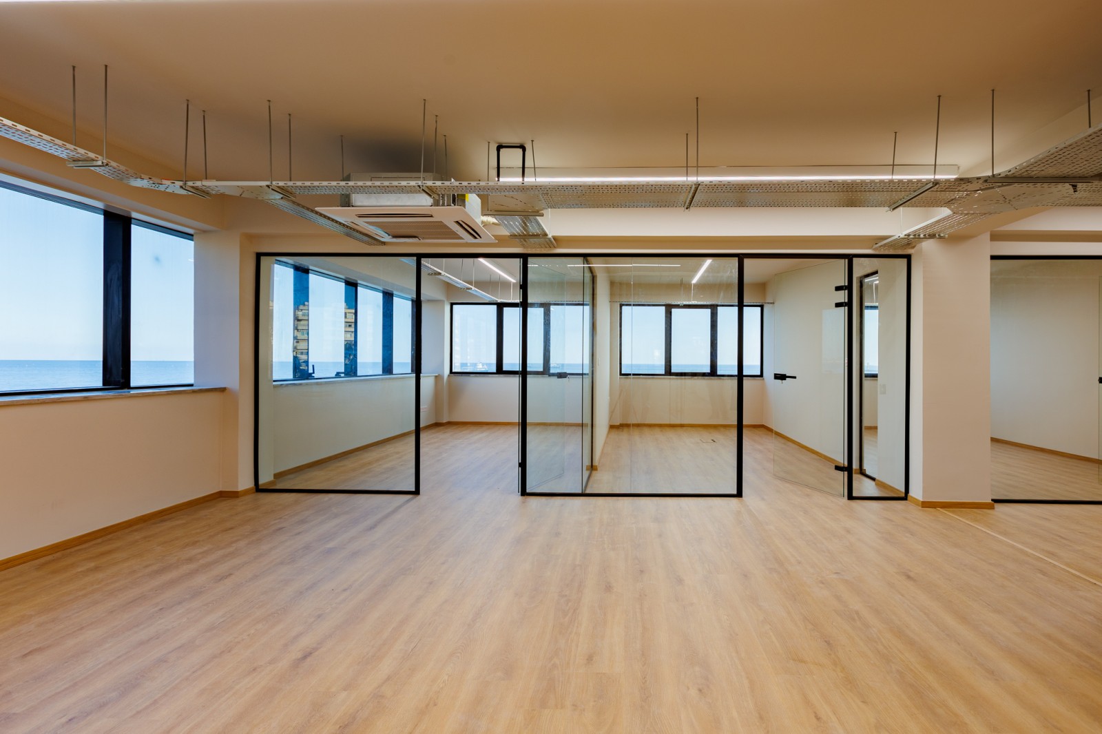 Откройте для себя полностью отреставрированный офис с видом на море, идеально расположенный в престижном деловом районе на 5-м этаже. Пространство площадью 300 кв.м включает в себя элегантную планировку с уютной зоной ресепшн, просторной конференц-комнатой, 8 индивидуальными кабинетами, балконом с живописными видами, серверной с отдельным кондиционером, полностью оборудованной кухней и двумя современными санузлами.