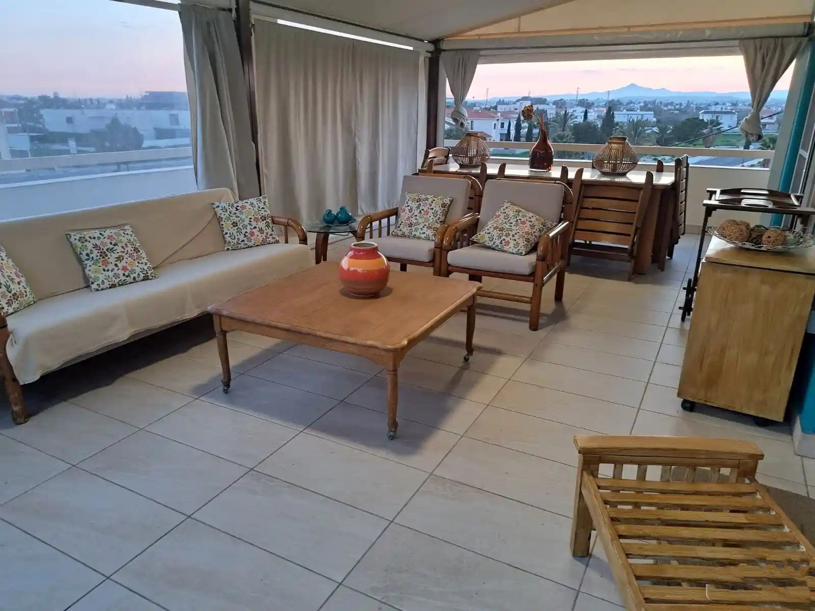 Этот прекрасный пентхаус расположен в районе Ливадия. Общая крытая площадь составляет 150 кв.м, а впечатляющая веранда — 60 кв.м. Квартира находится на втором этаже двухэтажного здания (лифта нет). Жильё в отличном состоянии, полностью меблировано и оснащено всей бытовой техникой, а также кондиционерами в каждой комнате. В планировке — 2 спальни, отдельная кухня и гостиная, а также дополнительная кухня/прачечная на веранде. В квартире 1 ванная комната, солнечный бойлер, электрическая система нагрева воды и система подачи воды под давлением. В стоимость также входит крытое парковочное место, что делает этот дом одновременно комфортным и практичным.