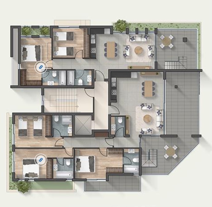 This exceptional residential development harmoniously blends architecture, light, and nature to create a refined urban living experience. Expansive terraces, lush landscaped areas, and floor-to-ceiling glass invite natural light while ensuring privacy and elegance. Interiors feature granite kitchens, natural wood accents, and energy-efficient solar systems, reflecting meticulous attention to detail and superior craftsmanship. Residents enjoy exclusive amenities including a private gym and roof gardens, all complemented by seamless access to the sea, marina, leading schools, and the vibrant rhythm of city life.