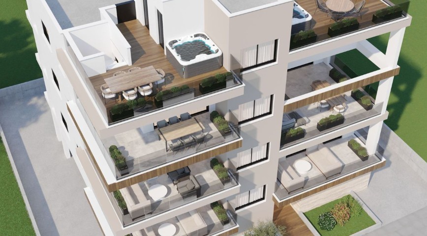 This modern residential development offers stylish 1- and 2-bedroom apartments designed for comfortable contemporary living. The homes feature spacious layouts, large verandas, granite kitchen worktops, double-glazed thermal aluminum windows, and en-suite walk-in showers, all within an energy efficiency Class A building. Residents benefit from covered parking, private storage, video intercom access, and provisions for air-conditioning and electric car chargers, while penthouses enjoy private roof gardens. The project is set in a peaceful environment close to parks and everyday amenities.