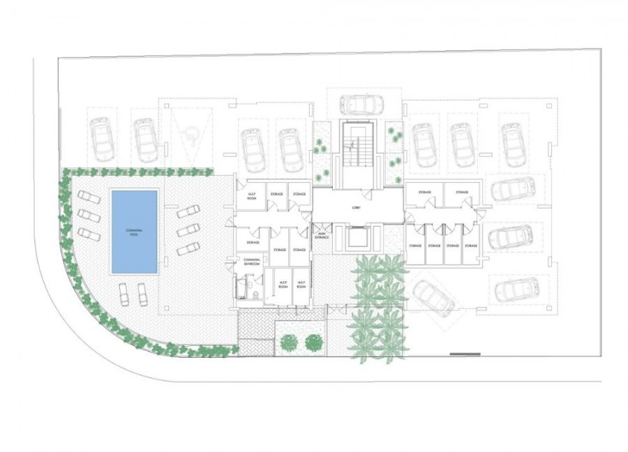 Общий бассейн в здании дополняет привлекательное и практичное жилое предложение.