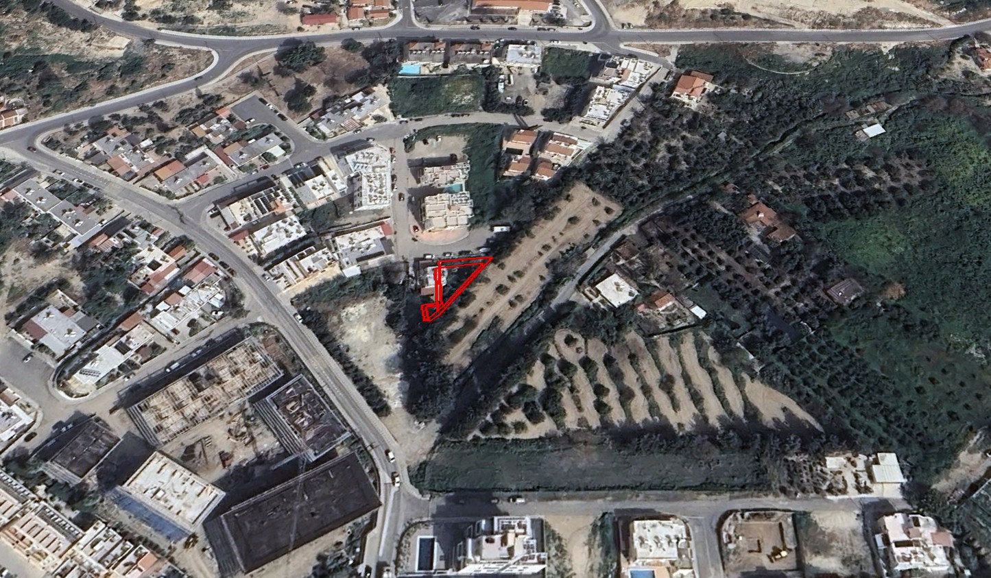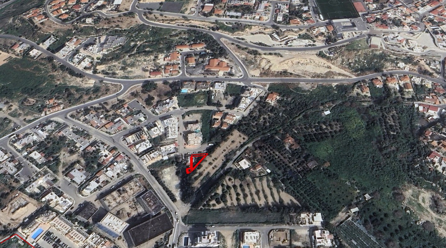 Участок находится в Пафосе, Мутталос (район Тзони), площадью 306 м². Зона застройки Κα7: коэффициент застройки 0,8, коэффициент покрытия 0,45, максимум 2 этажа, высота до 10 м. Допустимая общая площадь застройки — до 245 м², при этом площадь первого этажа не должна превышать примерно 138 м².
