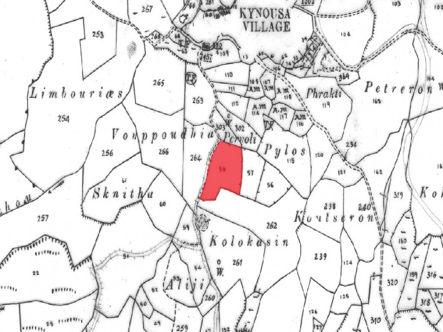 Residential field in Kinousa community of Paphos district. It is situated at a distance approximately 230 m south of the community stadium and approximately 290 m southwest of Saint Maria church.