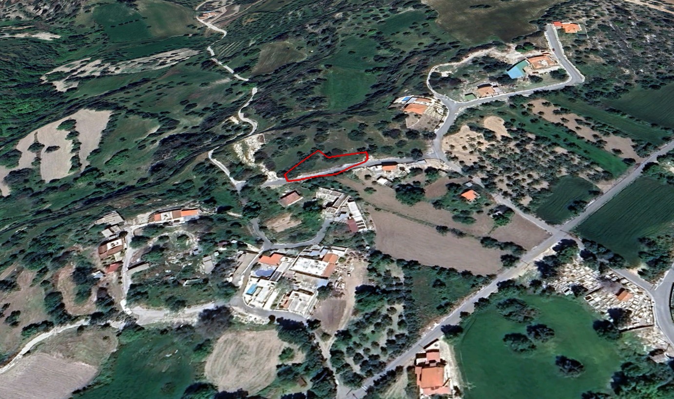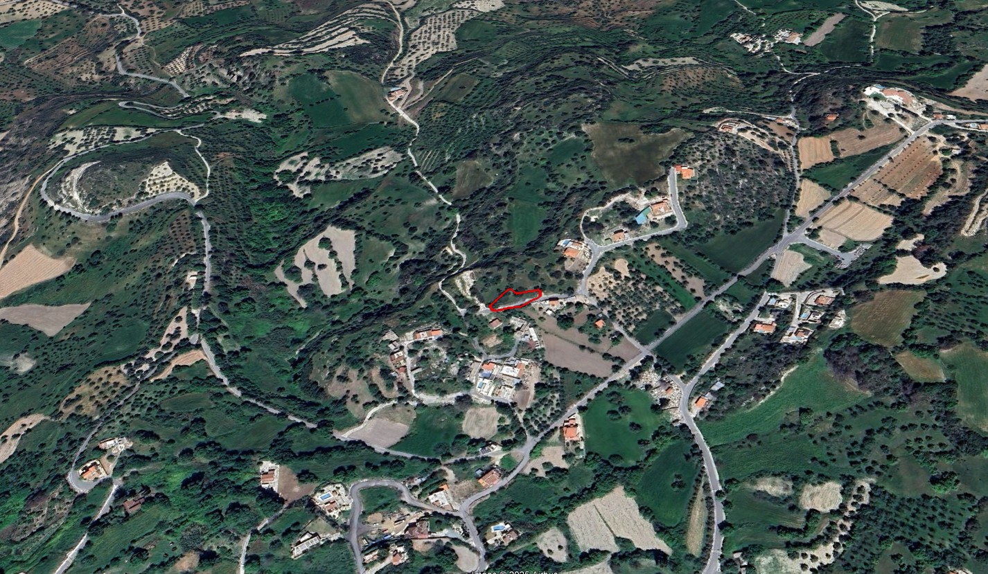 Участок находится в районе Ставри, всего в 500 метрах к северу от центра деревни, и занимает площадь 883 кв.м относительно ровной земли с прямым выходом на общественную дорогу шириной около 5 метров. Благодаря расположению на склоне холма открываются непрерывные виды на живописную деревню, окрестные поля и великолепные панорамы залива Лачи.