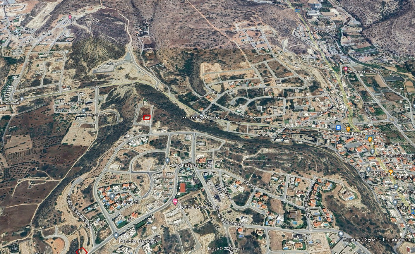 Жилой участок земли расположен в районе Паниотис, Лимассола. В непосредственной близости находятся недавно построенные высококачественные дома, участки и незастроенные земли. От участка легко добраться до автомагистрали Лимассол-Никосия, центра города и пляжа.