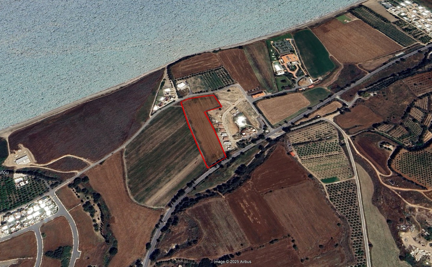 Участок расположен в округе Пафос, в муниципалитете Поли Хрисохус, в районе Кампос – Мавровуни. Общая площадь участка составляет 12 367 кв. м, и он полностью (100%) находится в градостроительной зоне Κα9. Для данной зоны установлены следующие параметры застройки: плотность застройки — 0,4, коэффициент покрытия — 0,25, максимальное количество этажей — 2, и максимальная высота зданий — 10 метров. Таким образом, максимальная допустимая общая площадь застройки составляет примерно 4 946,8 кв. м, а максимальная площадь застройки по пятну — 3 091,75 кв. м.
