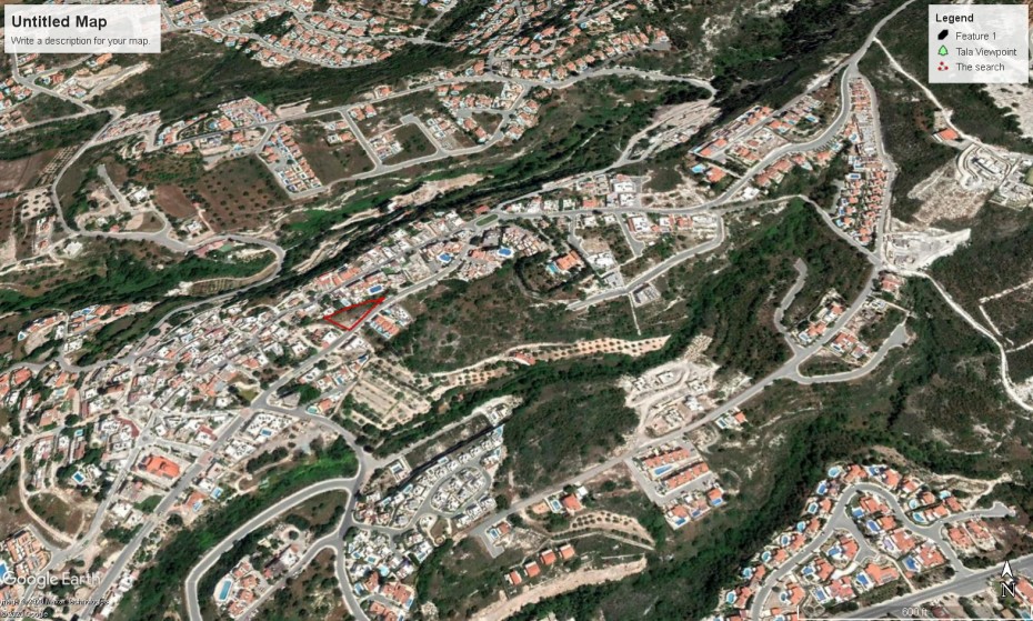 Земля расположена в 8,4 км к северу от центра города Пафос и в 8,6 км к юго-востоку от космополитического Голубого флага Песчаного пляжа Кораллового залива. Он предлагает легкий доступ к разным районам.