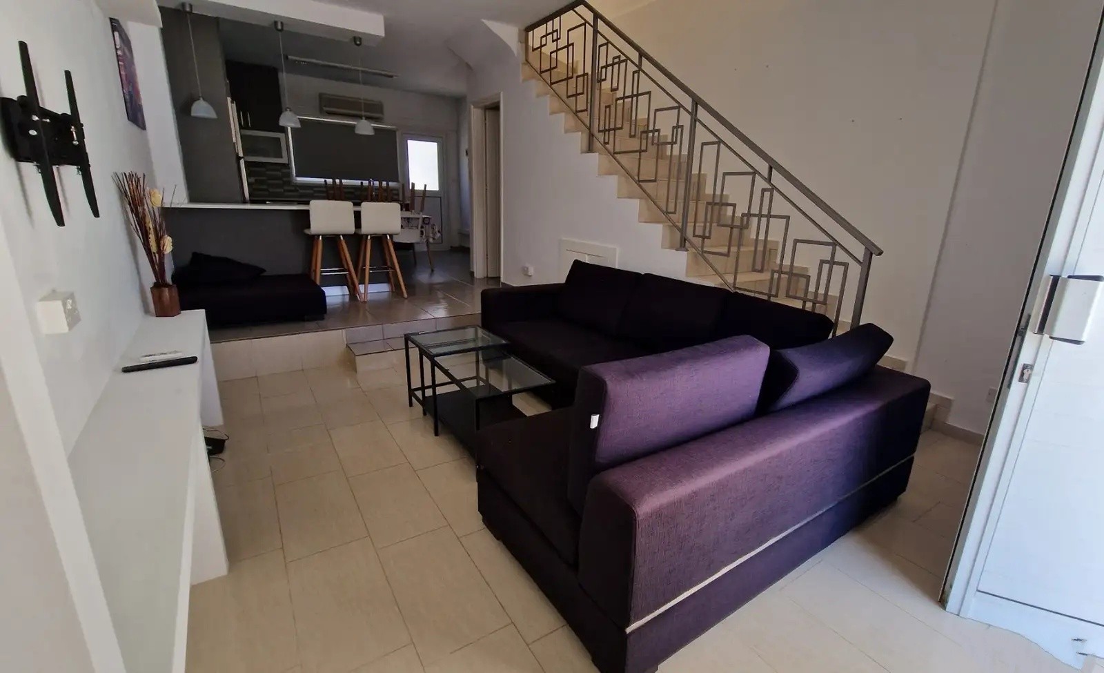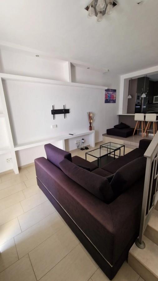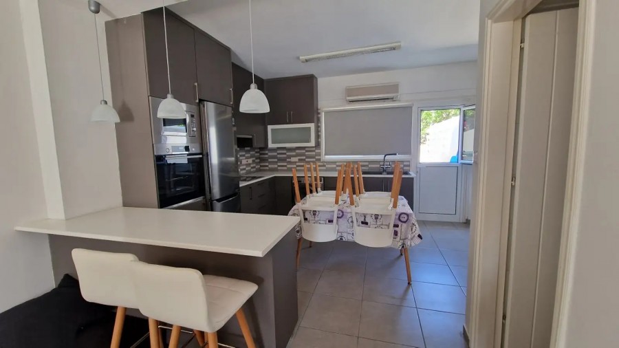 A two-storey residence located in Oroklini, featuring two bedrooms. The ground floor consists of a spacious open-plan area that includes the kitchen, dining room, living room, a guest toilet, and two verandas. On the upper floor, there are two bedrooms, one bathroom, and an additional veranda. The maisonette has been recently renovated.